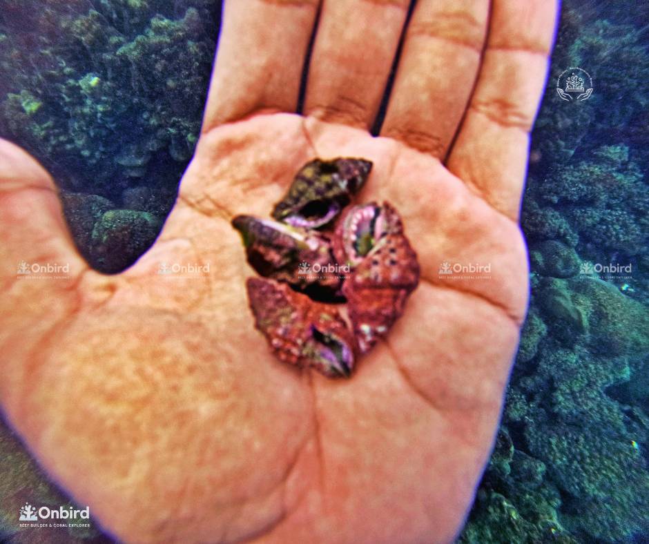 In Phu Quoc, early signs of Drupella predation have been observed in areas involved in coral restoration projects—such as Coral Nursery and Transplantation Sites managed by OnBird. While the damage has not yet escalated, Drupella could become a serious threat to young, developing coral colonies if not addressed in time.