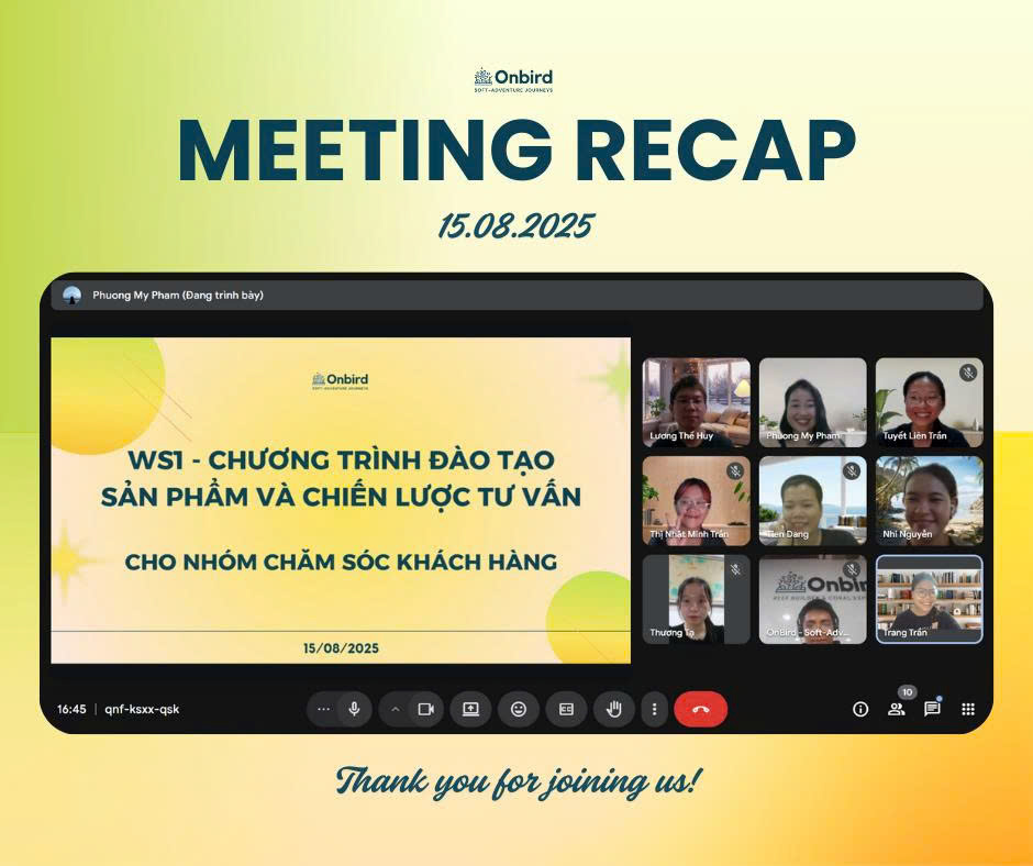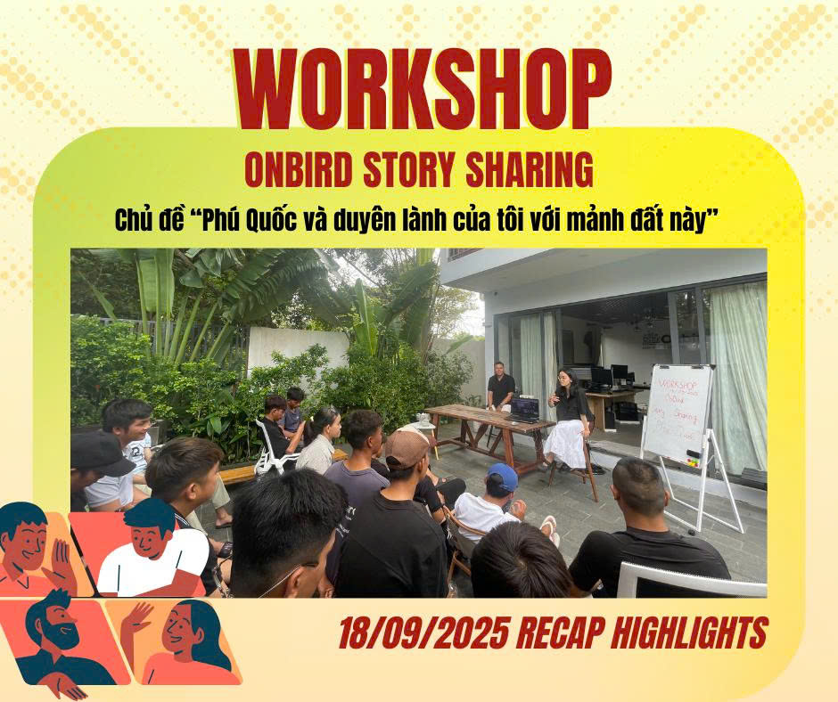 Our commitment does not stop at sea. It is nurtured every day from within our team. In Q3 2025, OnBird organized a meaningful series of internal workshops: cross-departmental training to improve collaboration, the OnBird Story Sharing – “Phu Quoc, My Fortunate Bond” program for team members to reflect on their own journeys with the island, advanced first-aid courses, and professional guiding skills for our newest recruits.