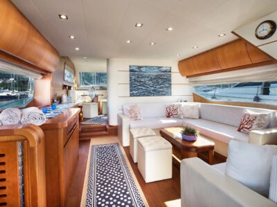 - The bow features seating for 5 – 6, allowing guests to bask in the sunshine and enjoy the sea breeze.