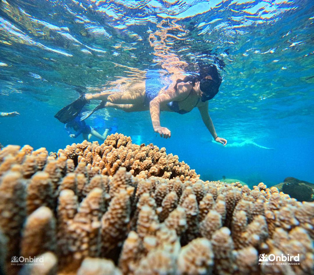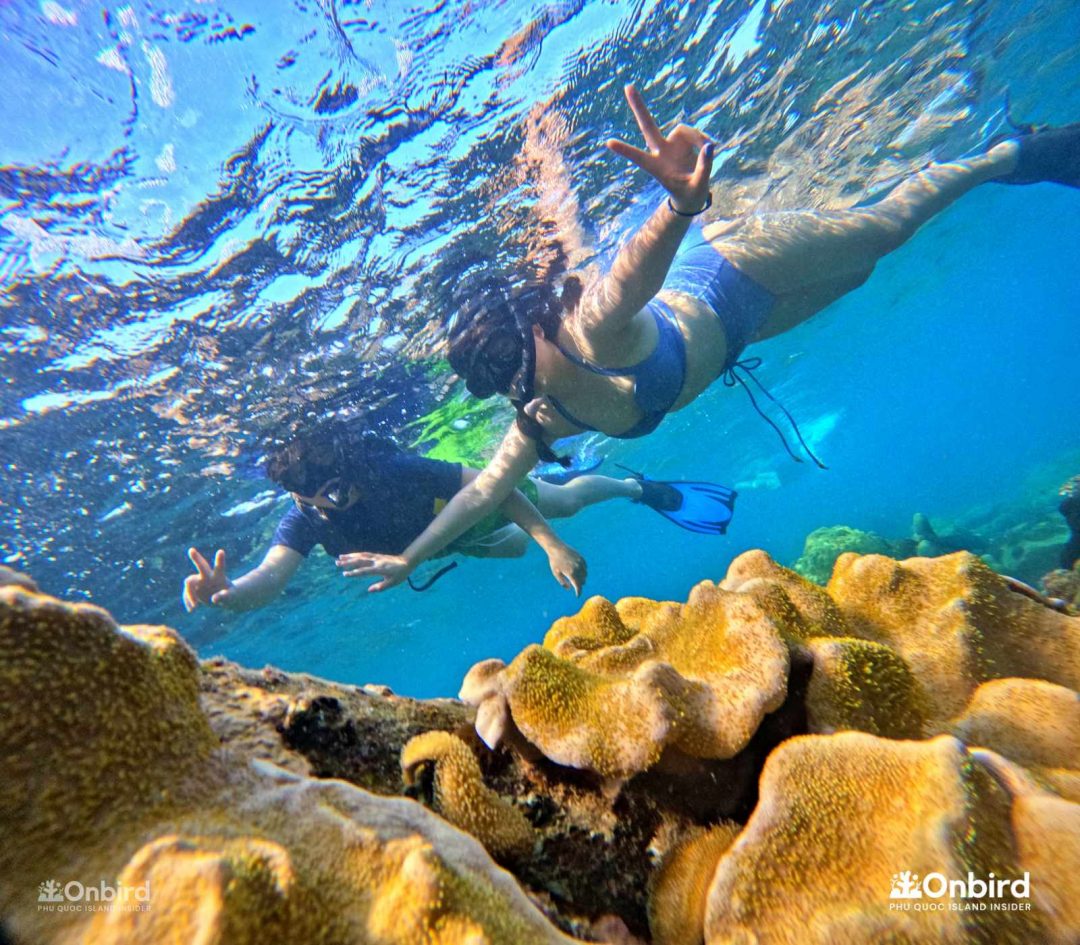 Trong các trải nghiệm lặn ngắm san hô khám phá sinh vật biển tại đảo Phú Quốc, OnBird luôn trang bị các thiết bị cao cấp gồm mặt nạ chống mù sương, ống thở cao cấp, chân vịt tăng độ nổi chuyên dụng cho du khách, giá một bộ thiết bị dao động từ 2,000,000 VND cho tới 3,000,000 VND.