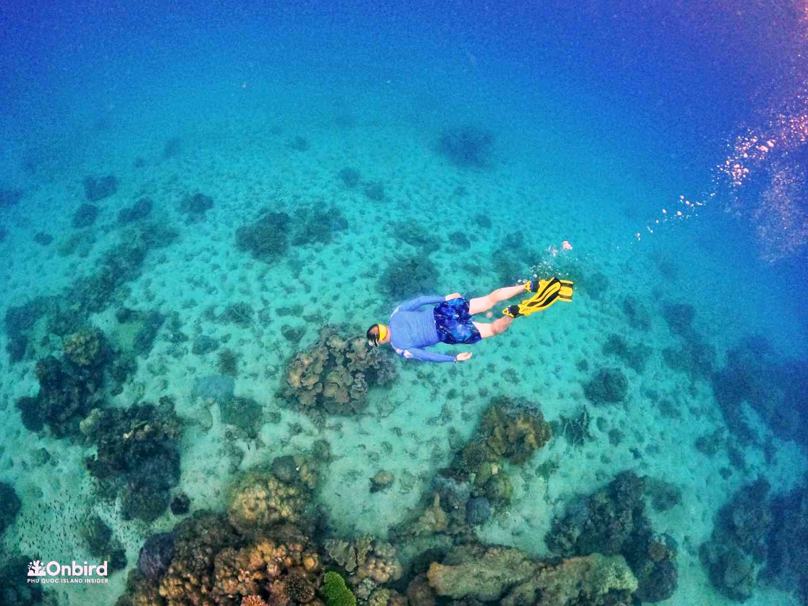 Ở Phú Quốc, bạn sẽ dễ dàng tìm kiếm được những địa điểm lặn biển phù hợp từng trình độ cũng như hình thức khác nhau như ở rặng san hô Bán Nguyệt (2 – 8m), rặng san hô U-Turn (2 – 12m) hay rặng san hô Pha Lê – ở núi San Hô (0.2 – 4m)
