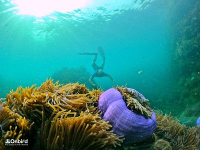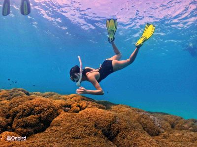 • 浮潜时要准备毛巾、长泳衣/覆盖全身以保护皮肤,晾干衣服以更换。 Onbird 建议您在水中限制使用防晒霜,以限制化学防晒霜对珊瑚和其他海洋生物造成影响。