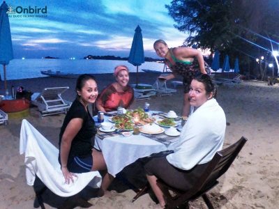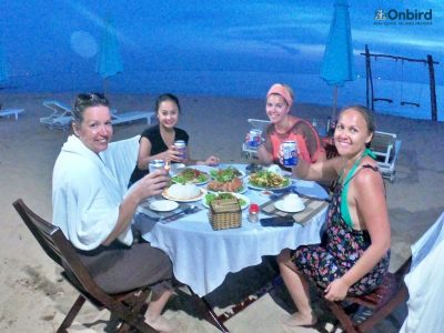 - 在安静气氛中欣赏海鲜晚餐在半月海滩